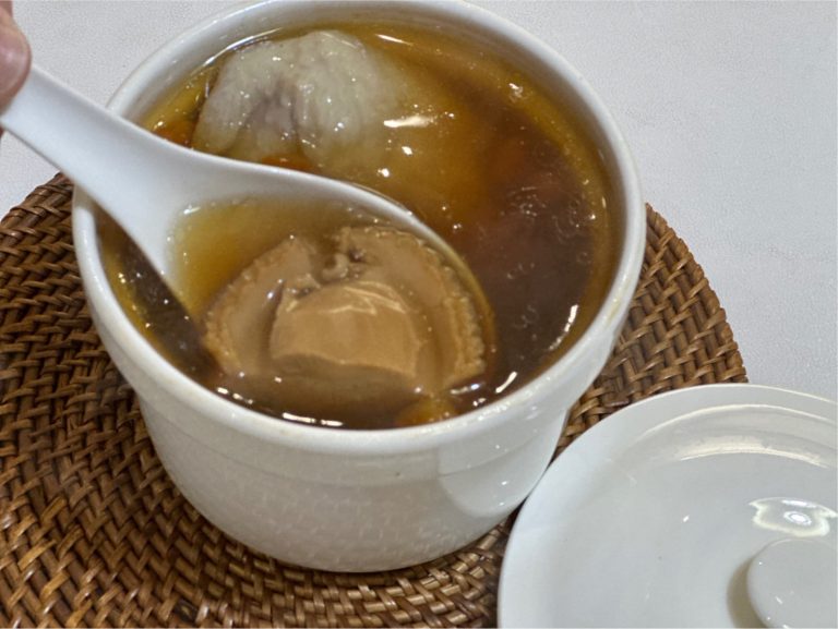 單顆飽滿的皇金鮑魚,彈嫩微黏牙,口感帶…