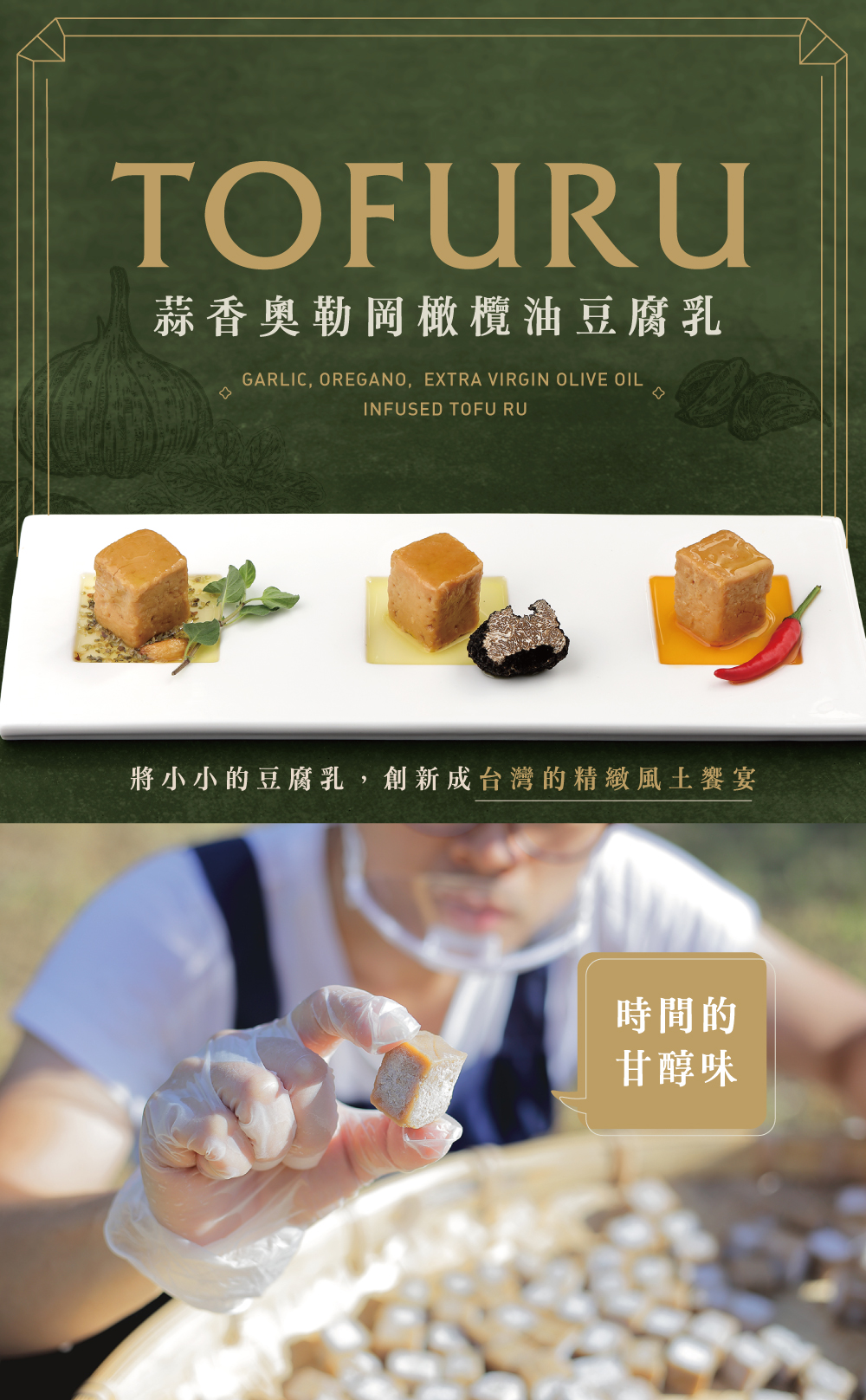 露酪來自宜蘭的精品級豆腐乳,結合健康減鹽的獨家配方與最新鮮的特級初榨橄欖油,醇香豐沛、絲滑綿密。手工日曬、精巧包裝,讓傳統美食跟上新時代,融入現代人的生活。不論搭配紅酒威士忌、佐生菜沙拉、抹早餐麵包,或拌入麵食料理,都能輕鬆享受食尚生活,精緻口感甚至媲美西式素食鵝肝醬,也是送禮自用兩相宜的高雅選擇,無論在台灣或出國,都能傳遞獨特東方美味與心意。