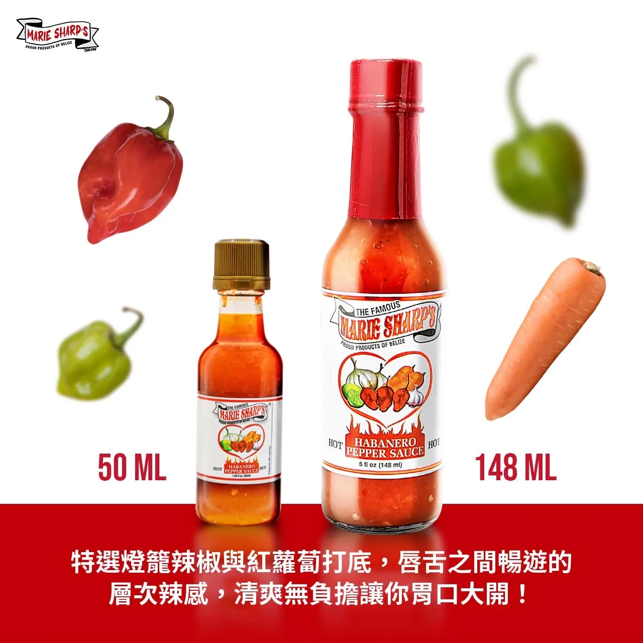 Marie Sharp’s 始終堅持初心:使用新鮮哈瓦娜辣椒與天然蔬果製成,不添加防腐劑、不加油,呈現乾淨、明亮、層次分明的辣感。更特別的是,Marie Sharp’s 將關懷女性的理念融入產品之中。以鳳梨風味為代表,象徵溫暖與力量,並將收益捐贈給性別暴力受害者,讓一瓶辣醬成為溫柔卻堅定的行動。從一份憐憫出發,走到世界餐桌,Marie Sharp’s 不僅是貝里斯的國寶級辣椒醬,更是一段關於信念、土地與愛的延續。